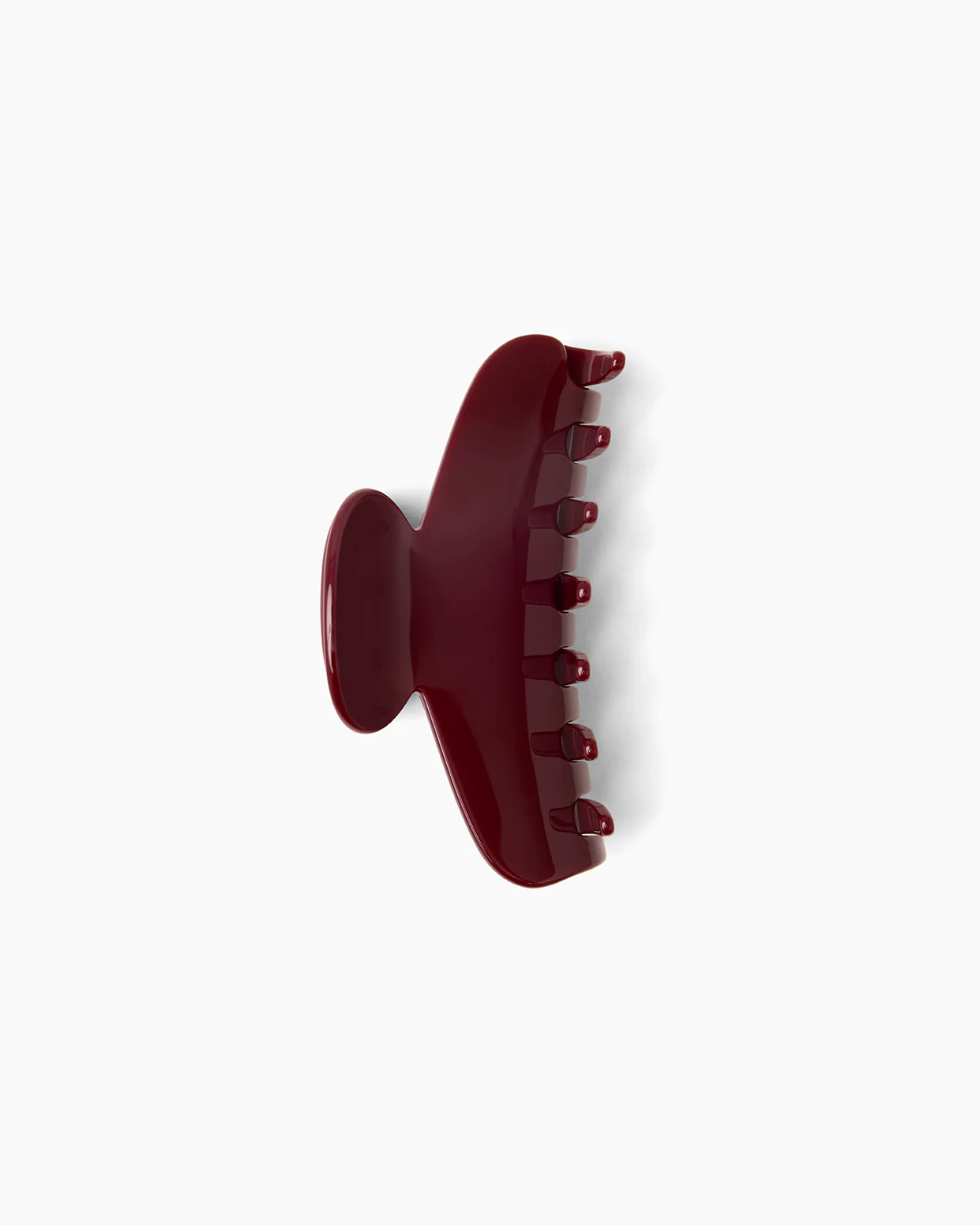 A refined essential for effortless styling. The Faye Hair Clip in burgundy acetate offers both functionality and refined simplicity, and its form is designed to secure the hair with ease while maintaining a sense of understated elegance.