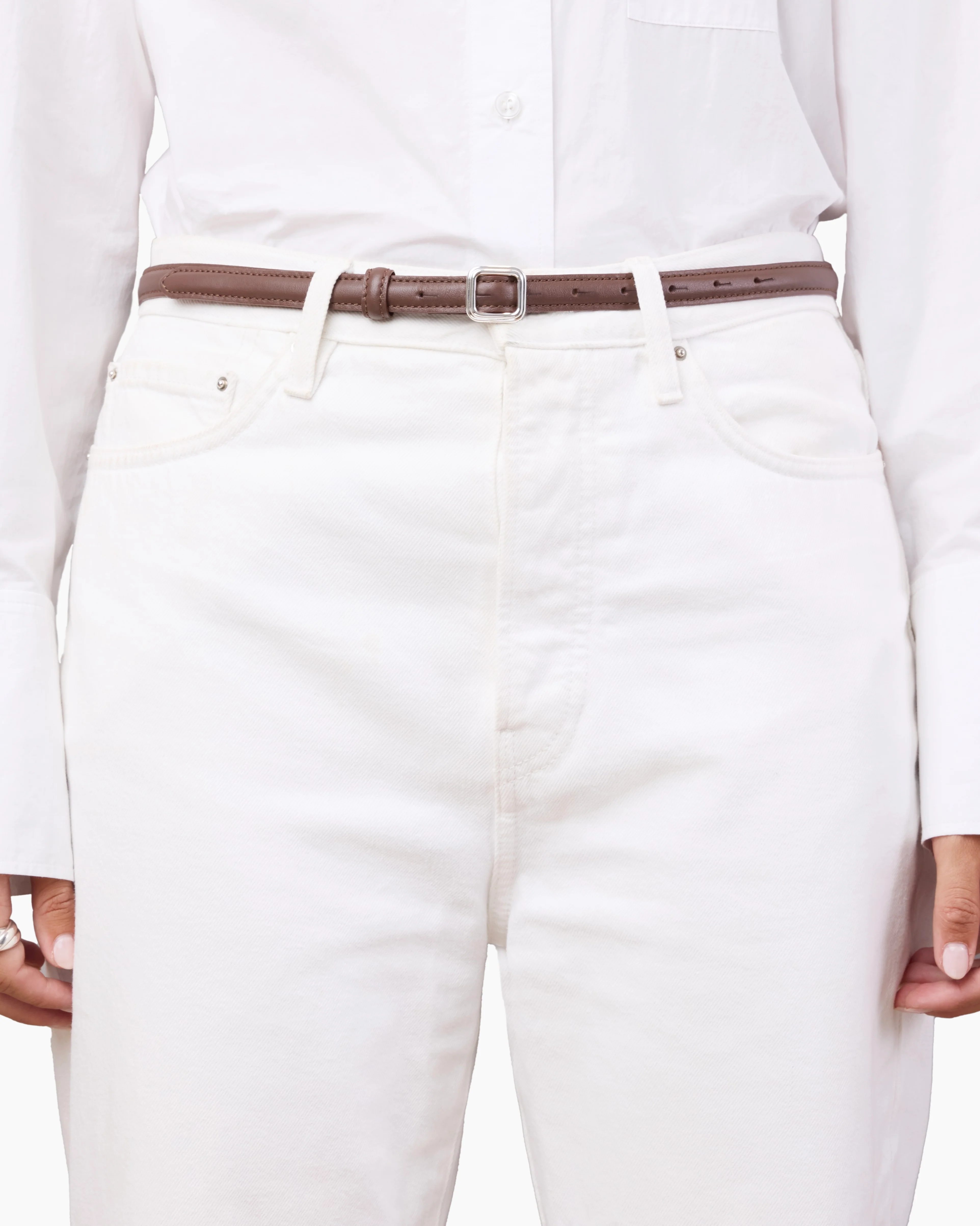 Elevate your wardrobe with the timeless and elegant wardrobe staple, The Georgia Belt Slim in Chocolate Brown. Expertly crafted from 100% Italian Cow Leather, this belt showcases an exquisite finish that adds a touch of discreet detail to any outfit.