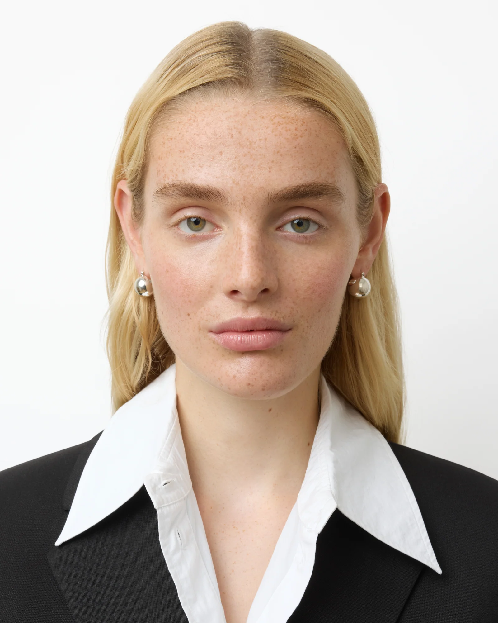 This ball-shaped earring is a timeless style that can be worn day and night, and will add to any outfit. We recommend pairing the earrings with a low bun and a subtle lip. This earring is crafted from 925 sterling silver.