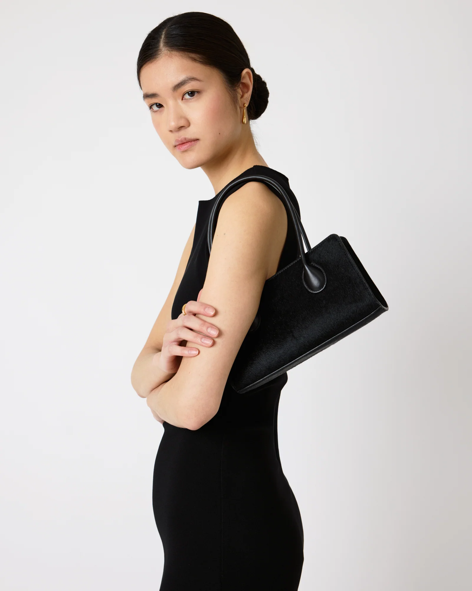 A modern evening bag with a nostalgic spirit, the Lou Bag is a refined take on the classic top-handle silhouette. Crafted from Black Calf Hair with a structured shape, it’s designed to hold your evening essentials with ease. Discreet yet distinctive, it adds just the right amount of polis. Whether paired with tailoring or a slip dress, it completes the look with understated elegance.